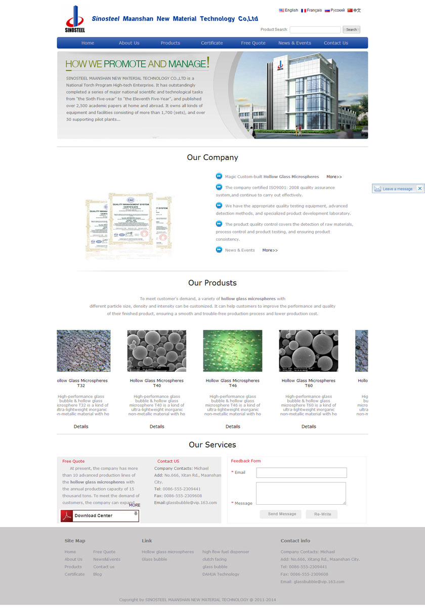 中鋼集團馬鞍山礦院新材料科技有限公司是專業(yè)從事高性能空心玻璃微珠的研發(fā)、生產(chǎn)、銷售的綜合性高新技術(shù)企業(yè),隸屬于中鋼集團馬鞍山礦山研究院有限公司。中鋼馬礦院創(chuàng)建于1963年,系中鋼集團直屬企業(yè)。建院以來,承擔(dān)并出色完成了國家重大科技攻關(guān)項目、科技支撐計劃項目118項,國家重大技術(shù)裝備國產(chǎn)化項目2項,國家級新產(chǎn)品、國家火炬計劃等項目22項,以及省部級重點單位及廠礦企業(yè)委托的各類項目12000余項,獲國家和省部級科技進步獎500余項,獲授權(quán)專利102項。該院是國家創(chuàng)新型試點企業(yè)、國家火炬計劃重點高新技術(shù)企業(yè),安徽省高新技術(shù)企業(yè)。