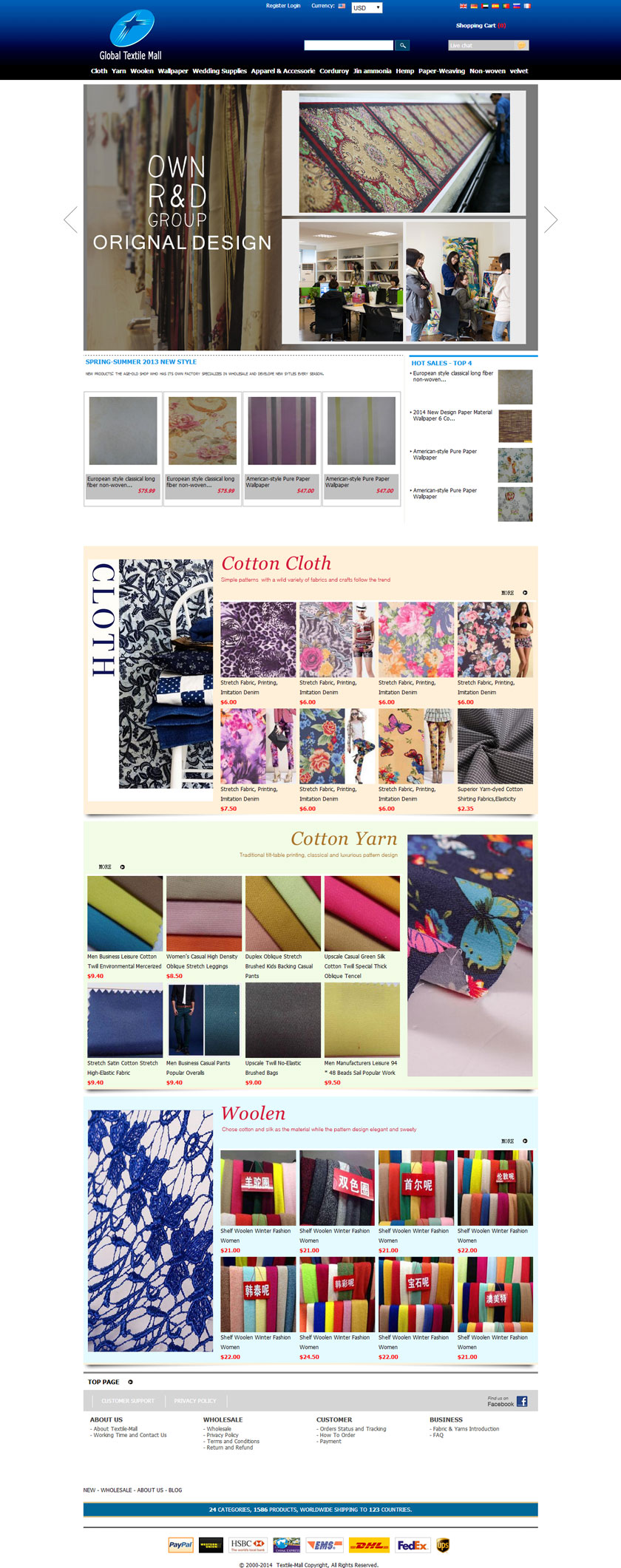 網(wǎng)上購物更方便,比傳統(tǒng)的方法更容易,紡織商場意向集中在網(wǎng)上批發(fā),希望領(lǐng)導(dǎo)一個新的批發(fā)方式。擁有自己工廠的紡織商城,保證了生產(chǎn)和質(zhì)量控制的能力。同時,超過16年的絲巾印刷領(lǐng)域經(jīng)驗讓我們建立一個專業(yè)的供應(yīng)商渠道,不僅能滿足我們自己的需求定制生產(chǎn)也要求。同時,這也培養(yǎng)了我們一個專業(yè)的服務(wù)團隊。此外,我們的低批發(fā)標(biāo)準(zhǔn)提高了資本的周轉(zhuǎn)率,這使得企業(yè)更容易。作為一家原設(shè)計制造商,我們擁有一個年輕、時尚、充滿活力的設(shè)計團隊。中國和歐洲的團隊成員分散,歐洲和日本的文化,設(shè)計了幾十到幾百個新產(chǎn)品,以配合我們的批發(fā)模式的需求。藝術(shù)產(chǎn)品在客戶中贏得了良好的聲譽和廣泛的傳播。由于我們的不斷努力,我們被稱為中國的彩色研發(fā)中心的圍巾。由于我們采取了,不過精致的圍巾作為我們的原則。我們的主要產(chǎn)品是絲綢圍巾,但除此之外,我們也有純模態(tài)、羊毛、棉布圍巾和混合織物如絲綢和棉布、絲綢和羊毛,絲綢和模態(tài),絲綢和亞麻,以滿足客戶的不同需求。