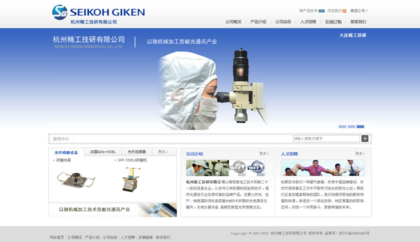 杭州精工技研有限公司是一家位于濱江區(qū)濱江科技經(jīng)濟(jì)園內(nèi)的日商獨(dú)資企業(yè),設(shè)立于2001年3月。主要以開(kāi)發(fā)、生產(chǎn)、銷(xiāo)售國(guó)際領(lǐng)先高質(zhì)量WDM技術(shù)所需的光電通信元器件,光電儀器設(shè)備,高精密微型光學(xué)透鏡為主。產(chǎn)品主要銷(xiāo)往中國(guó)、日本、北美、歐洲等世界各地。公司擁有世界一流微小控制加工機(jī)械和精密研磨加工設(shè)備,并結(jié)合日本先進(jìn)生產(chǎn)經(jīng)驗(yàn)和中國(guó)的優(yōu)秀人才,為光通信和超精密透鏡行業(yè)提供更多的優(yōu)質(zhì)產(chǎn)品和服務(wù)。作為精工技研集團(tuán)公司的一員,杭州精工技研將擔(dān)負(fù)起生產(chǎn)經(jīng)營(yíng)、研究開(kāi)發(fā)和銷(xiāo)售的重任。精工技研以精密微加工技術(shù)貢獻(xiàn)二十一世紀(jì)信息社會(huì)。以多年以來(lái)積累的經(jīng)驗(yàn)和技術(shù),提供光學(xué)行業(yè)優(yōu)質(zhì)可靠的品牌產(chǎn)品。公司的宗旨是以先進(jìn)的生產(chǎn)技術(shù)為光纖通信和超精密透鏡提供誠(chéng)心的解決方案,以我們所提供的產(chǎn)品的質(zhì)量、性能、誠(chéng)信和售后服務(wù)為公司股東、員工和合作單位帶來(lái)長(zhǎng)期的利益。